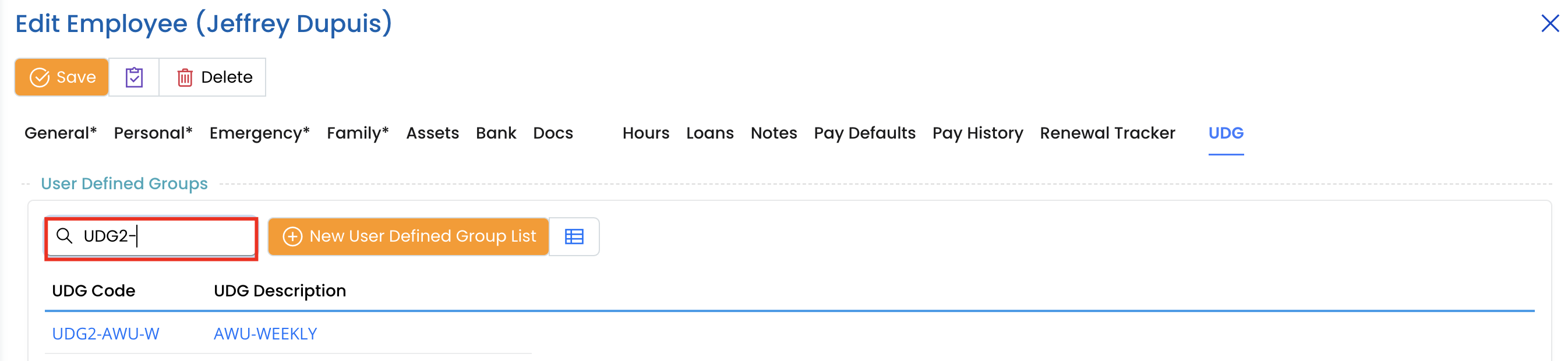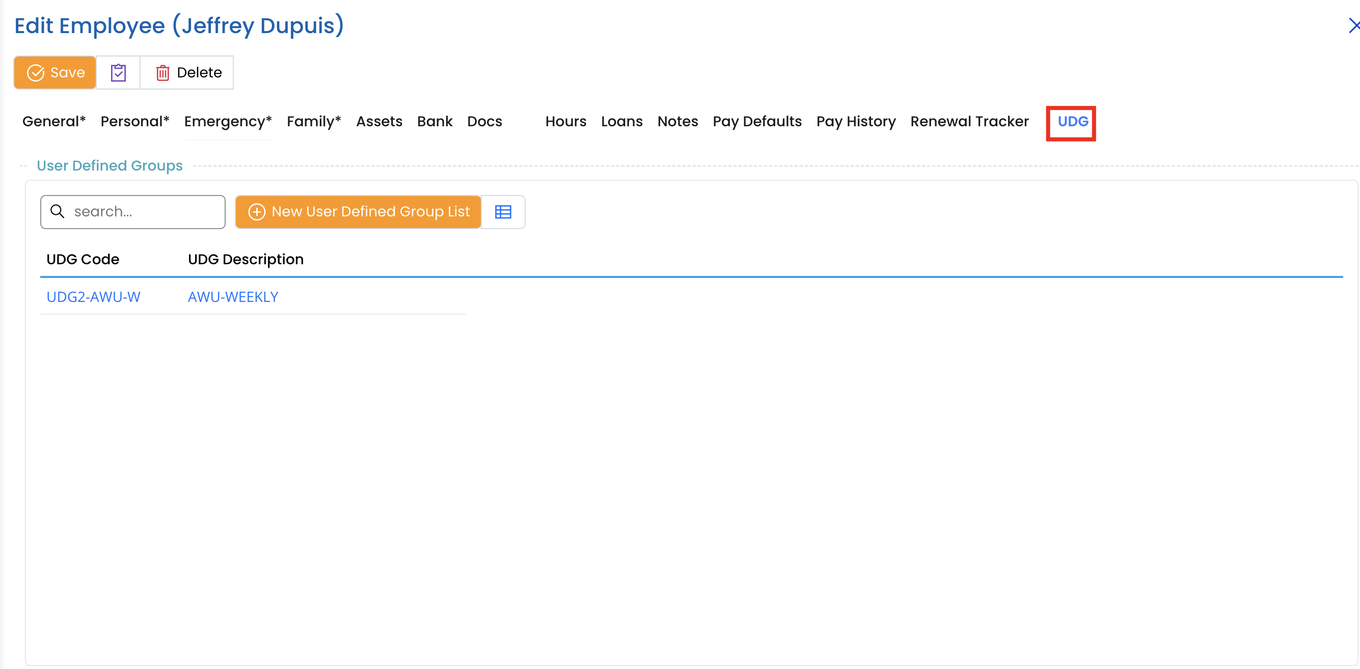 - Select the employee for whom you want to manage UDGs.