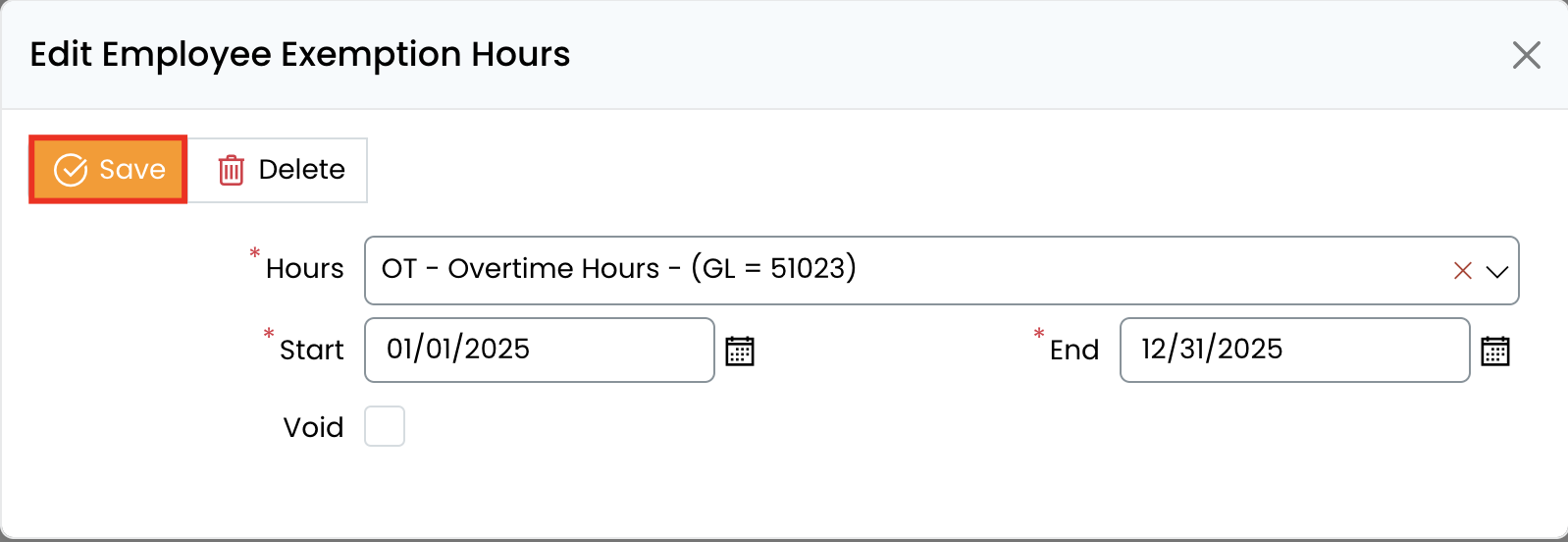 - The new exemption hours will now be recorded for the employee.