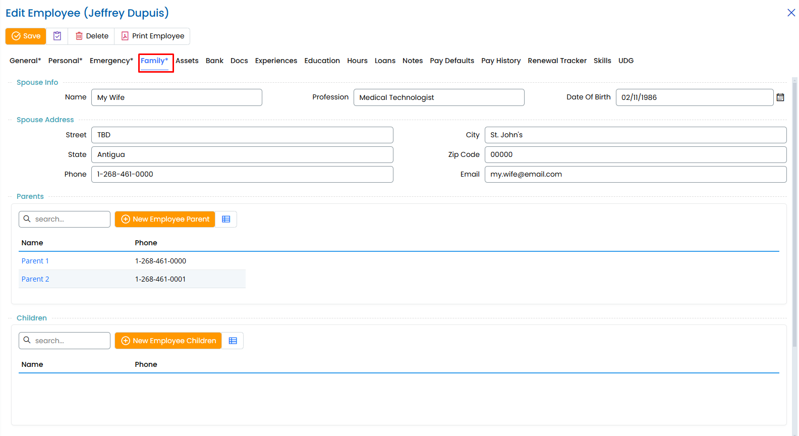- If an employee has no spouse, parents, or children, this tab can be left blank.