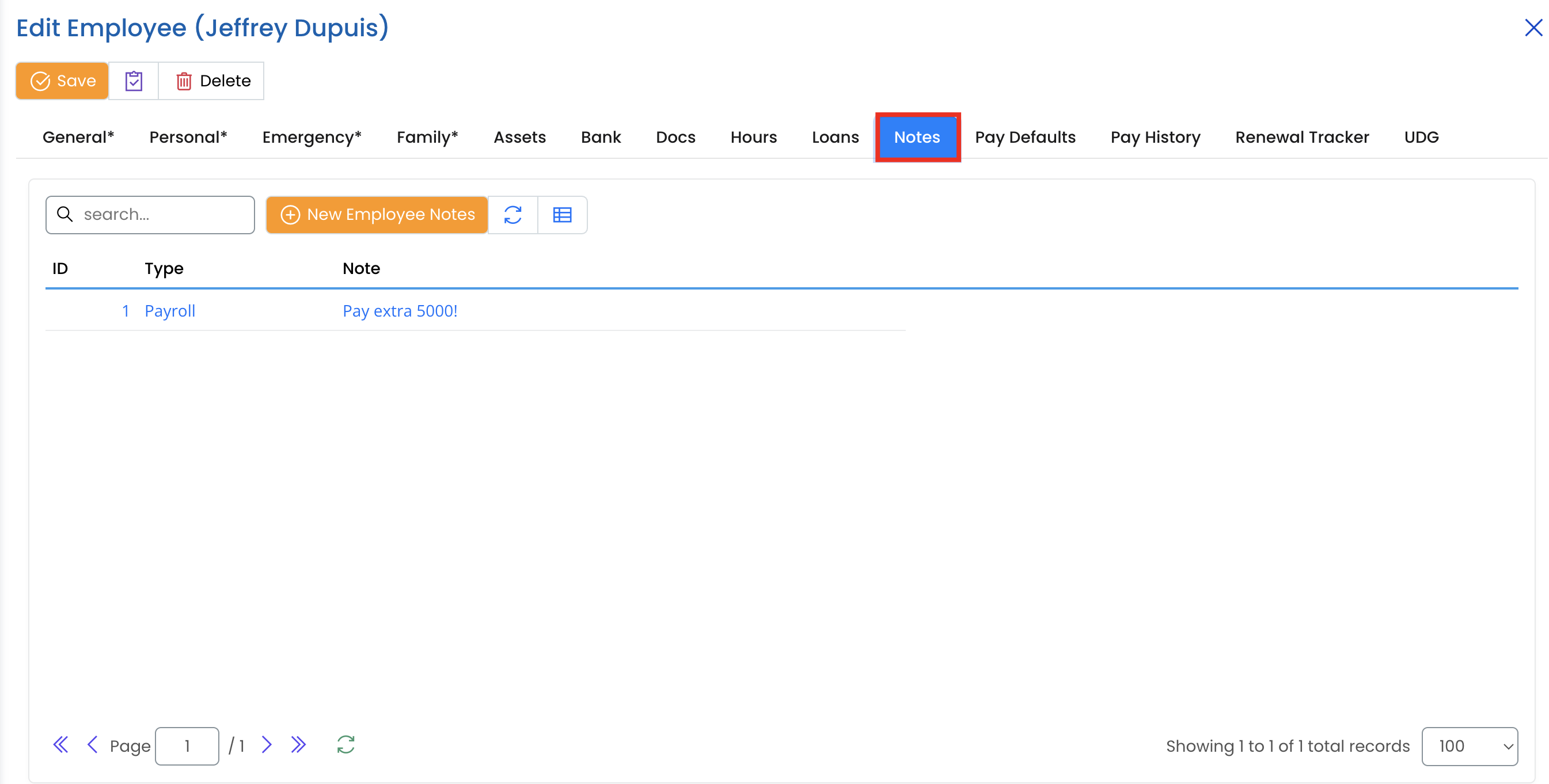 - Once notes management is complete, you can proceed to other sections like Bank, Assets, Docs, Hours, Loans, and Pay Defaults to further build the employee’s profile. 🚀