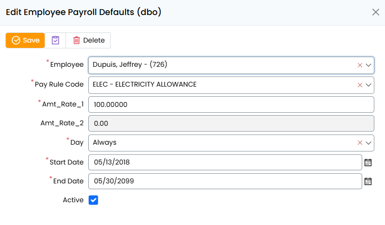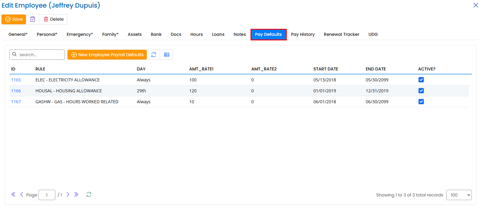 - Employees can have multiple pay defaults active simultaneously.
