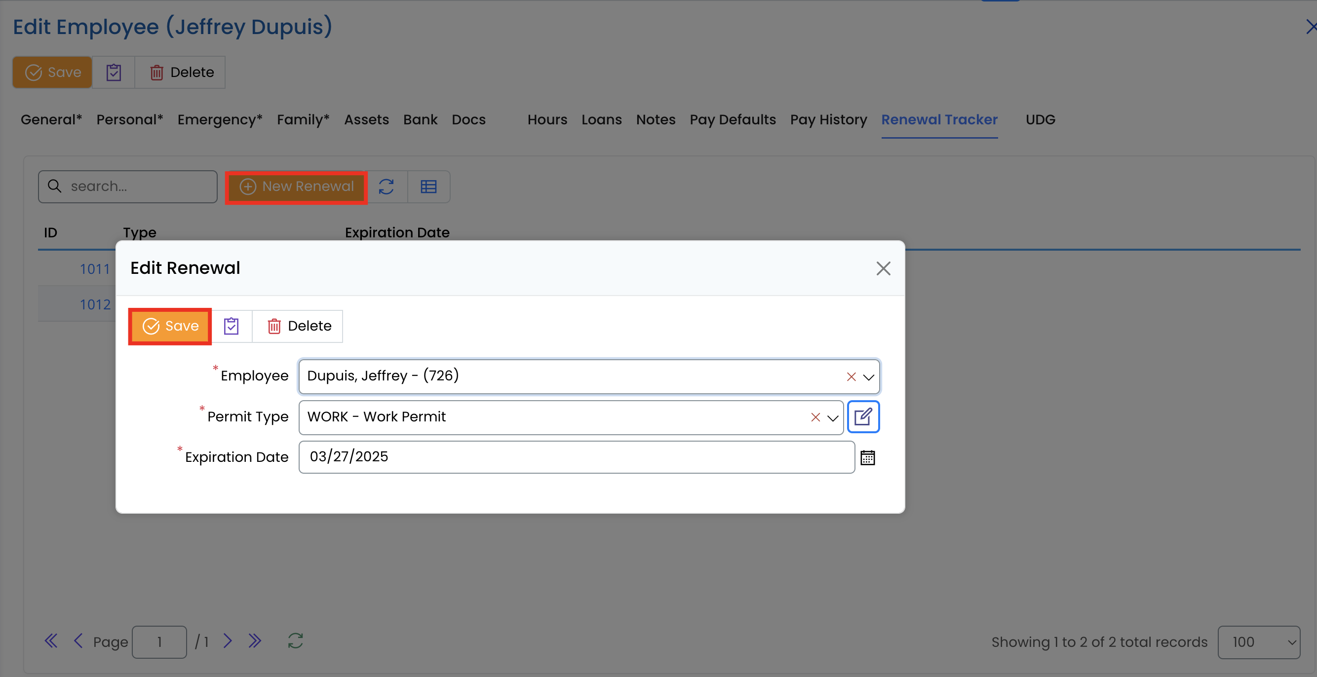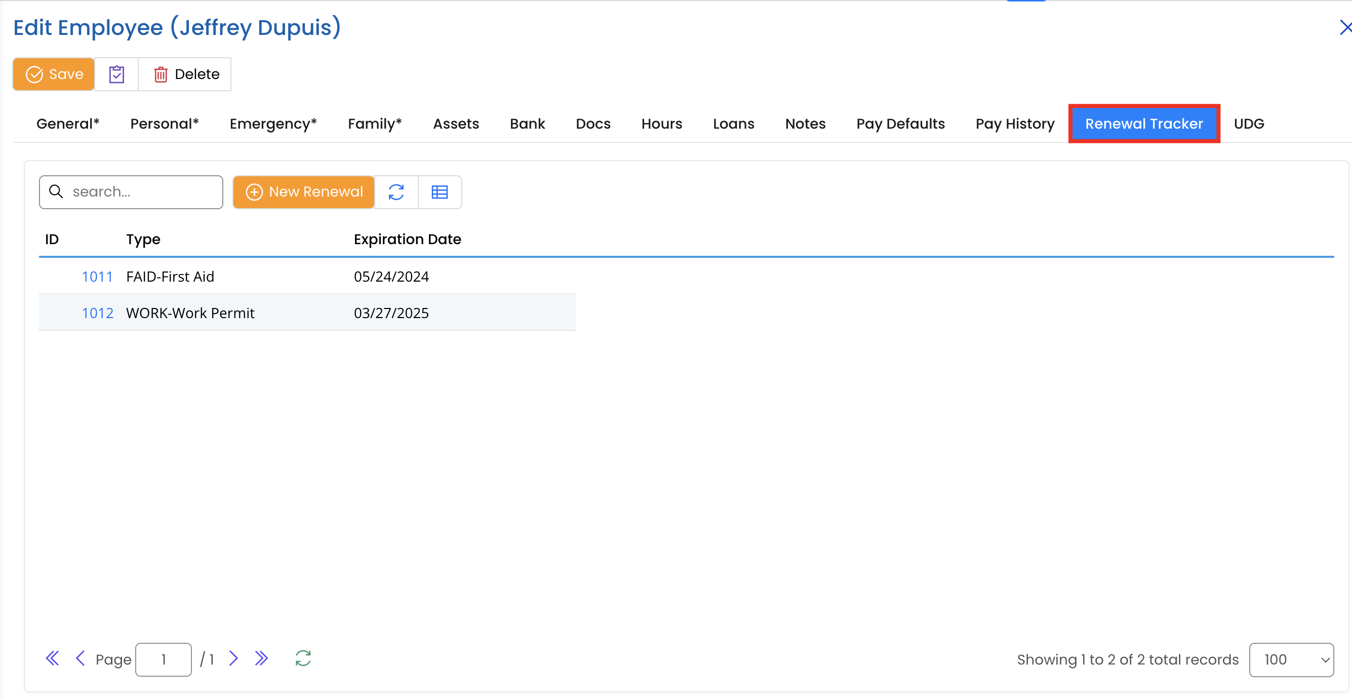 The Renewal Tracker tab in XandaPay helps track employee certifications, licenses, and other renewable documents. This feature ensures timely renewals and compliance with company policies.