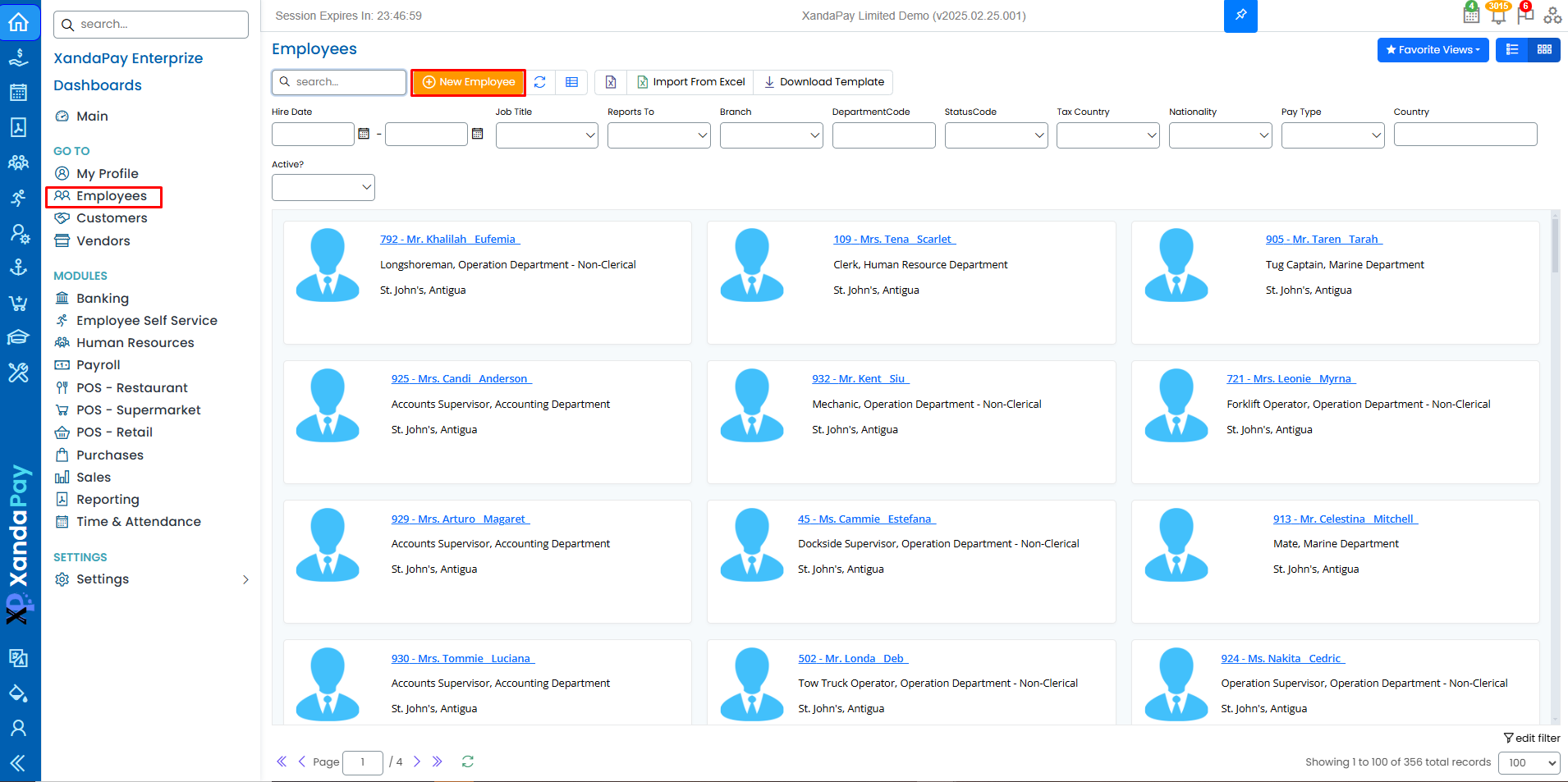 - Go to the Employees module.