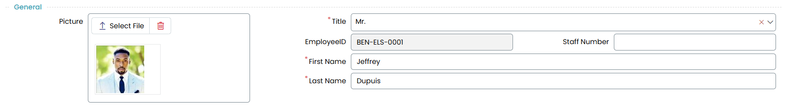 - Picture: Upload the employee’s profile picture by clicking "Select File".