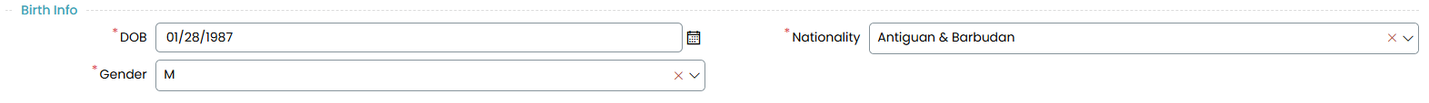 - Ensure that Date of Birth (DOB), Gender, and Nationality are populated in the Personal Tab.