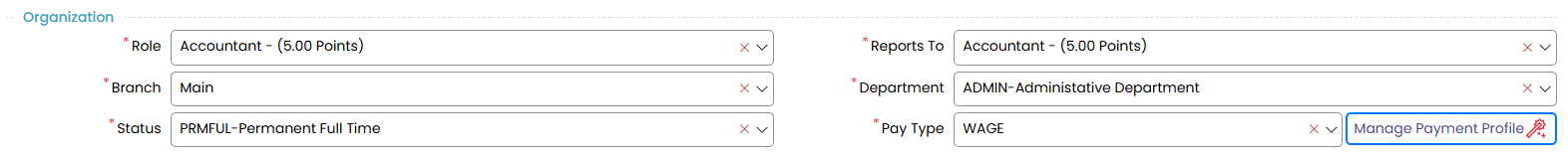 - Role: Select the employee’s job title from the dropdown list.