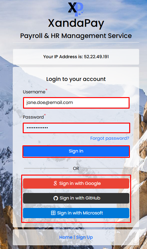 Double-check that you are using your company’s correct subdomain (e.g., abc.xandapay.com).