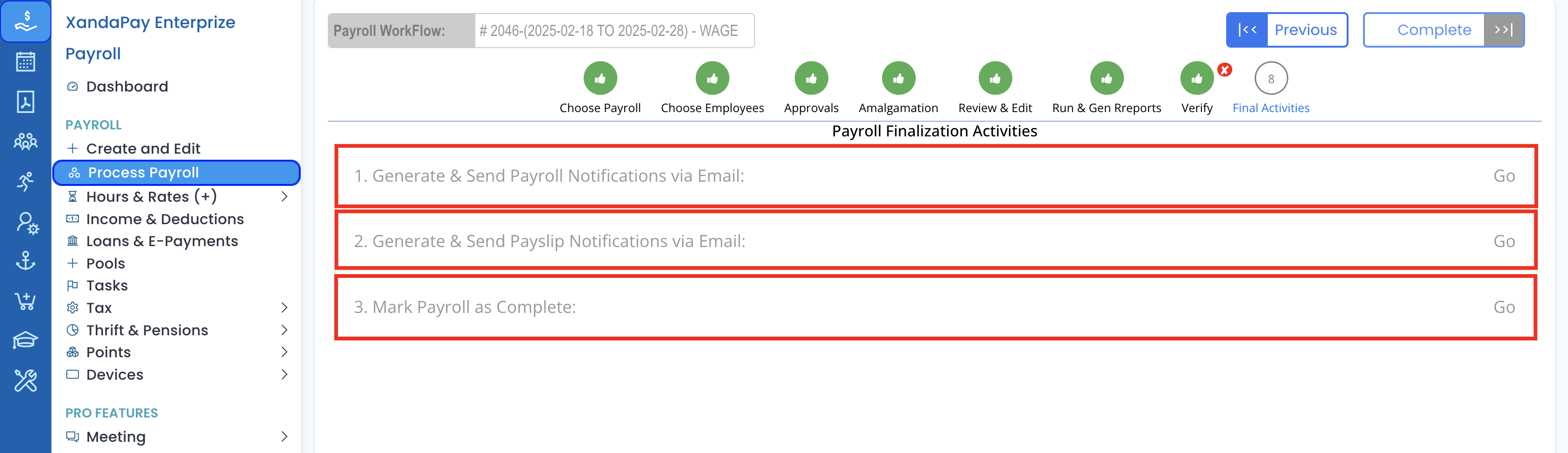- Mark Payroll as Complete (Click Go)