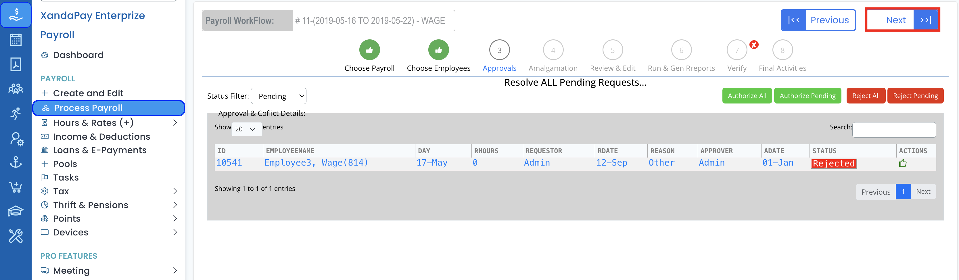 - Navigate to the Payroll Workflow module.