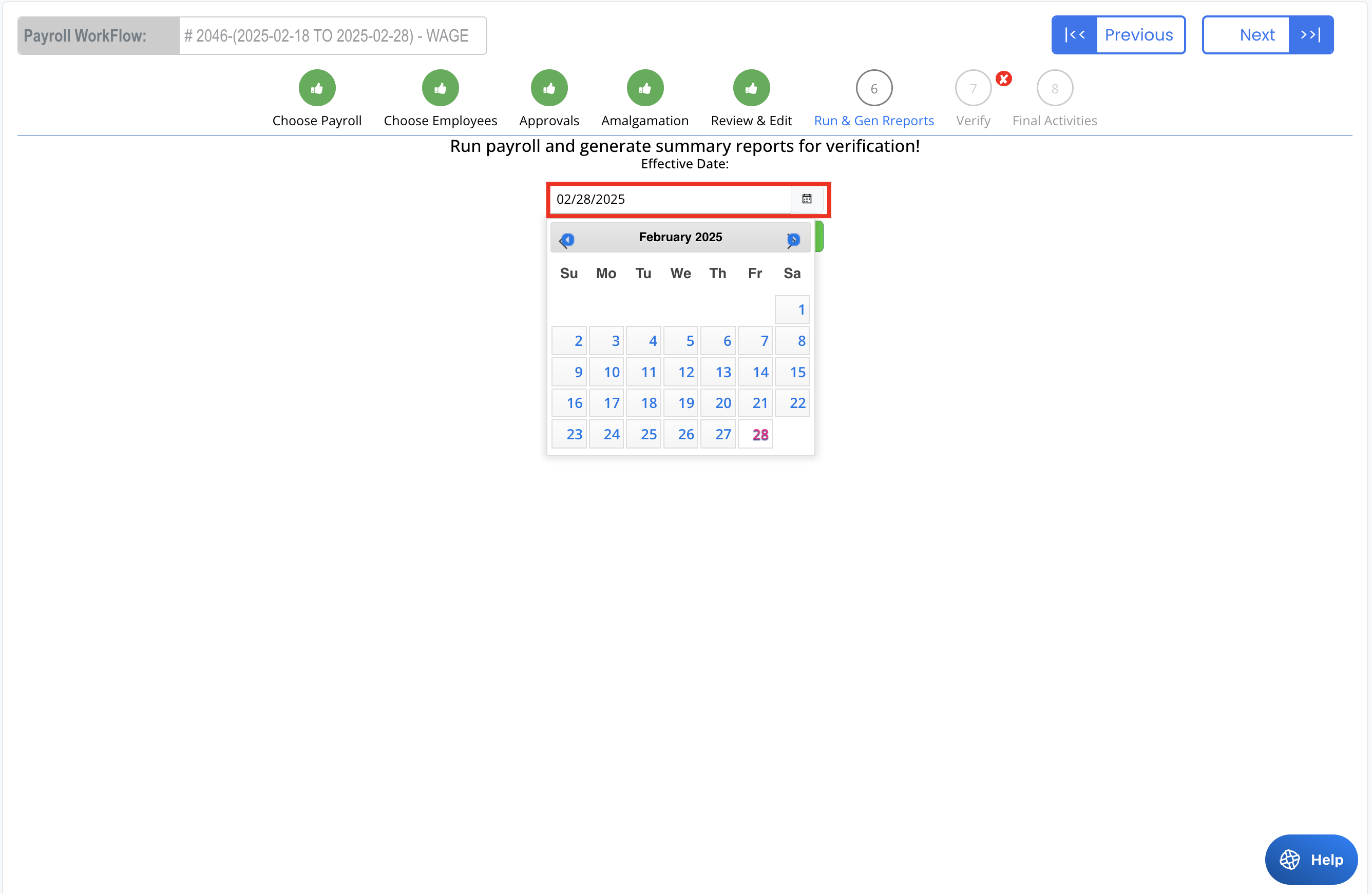 - Set the Effective Date for the payroll.