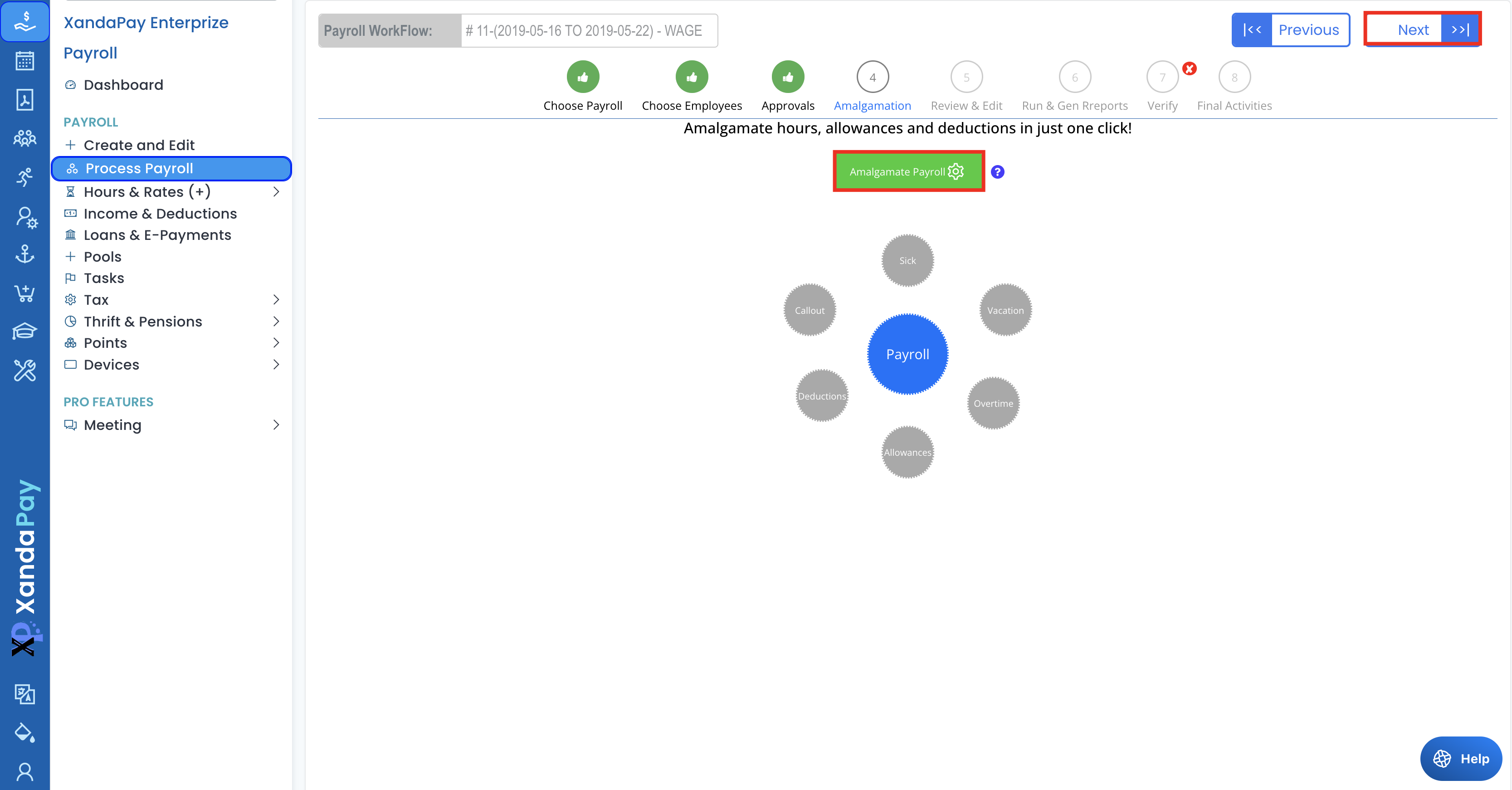 - Click the Amalgamate Payroll button to merge all approved hours, allowances, and deductions.