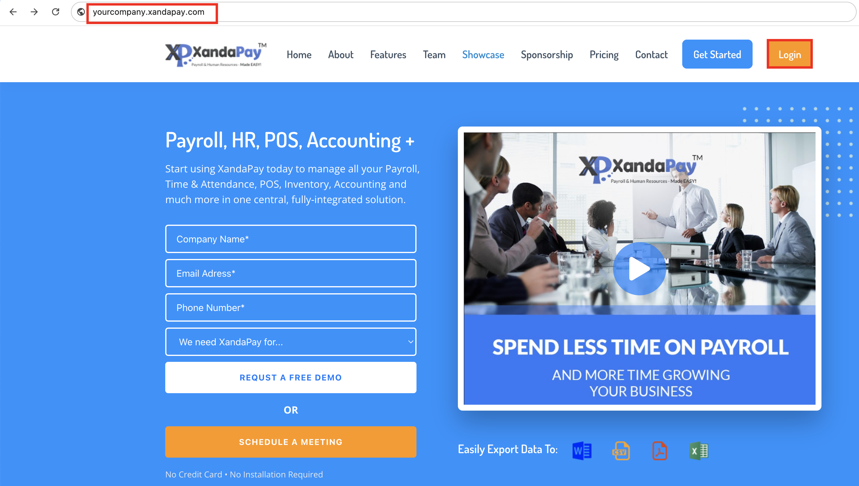 Example: yourcompany.xandapay.com - Click on the "Login" button.