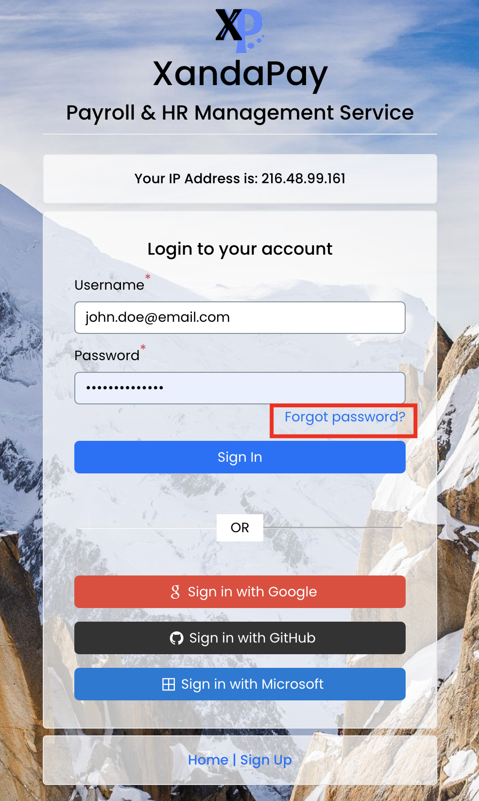 If you have forgotten your password for your XandaPay account, follow these steps to reset it